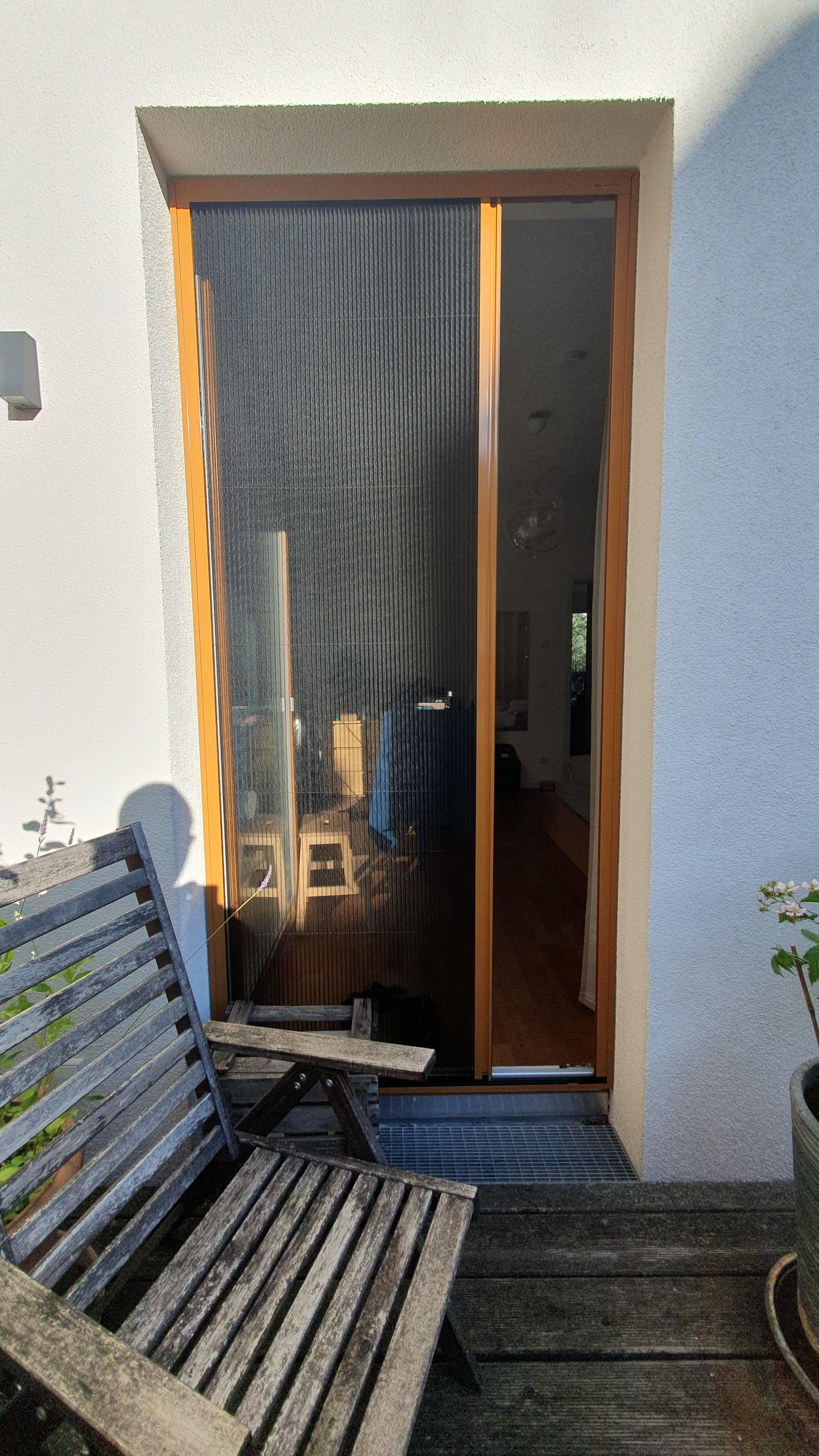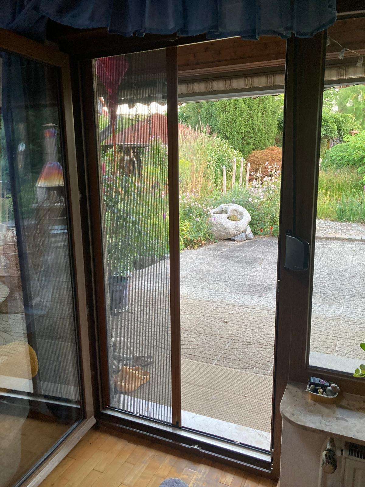 Die Terrassentür ist im Sommer der meistgenutzte Eingang - und leider auch der schnellste Weg fuer Mücken und Fliegen.